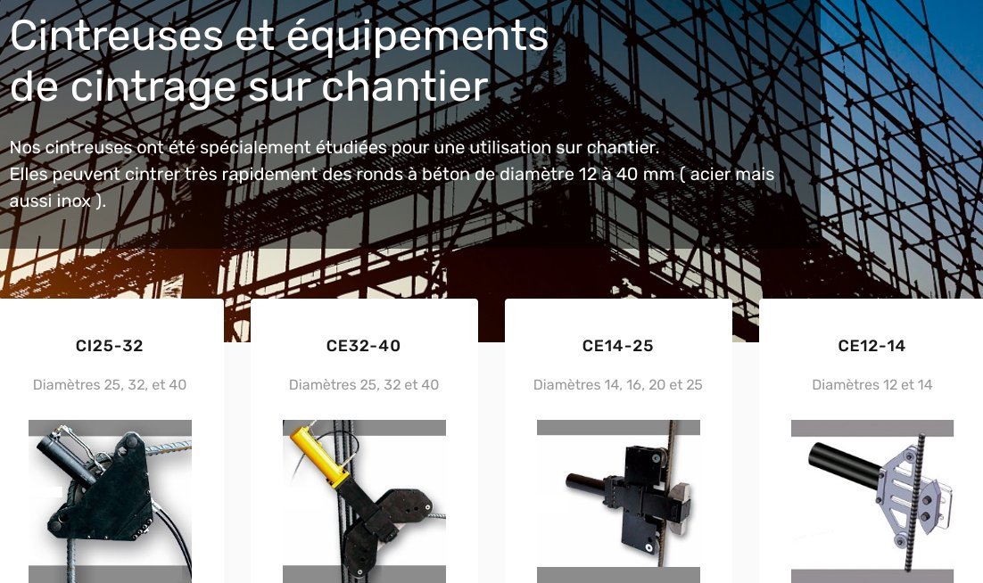 La cintreuse de chantier , CE32-40 est la cintreuse de chantier la plus puissante du marché. D'un rapport puissante/poids sans équivalent, sa force de cintrage est de 14 tonnes. Elle permet le cintrage sur chantier des ronds à béton HA500 du diamètre 25 au diamètre 40.